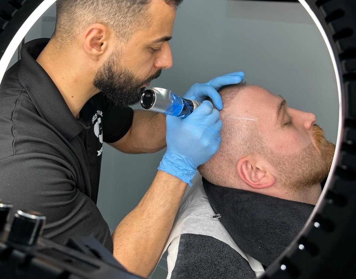 SMP (Scalp Micropigmentation) is a non-surgical treatment that creates the look of natural hair follicles. It can restore a receding hairline, add density to thinning areas, or cover scars.